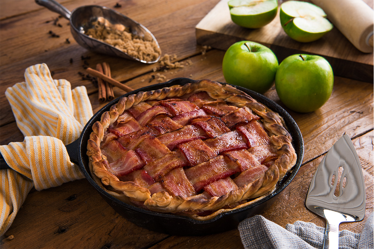 Det fik tankerne til at spire... For hvis selveste Præsident Lincoln kunne trimmes ned i 80´erne ved at spise bacon og æbler, hvorfor kan vi så ikke? Så for nogle dage siden, da kokken knoklede i køkkenet en aften, slog tanken ned... måske den mest amerikanske tanke, nogen nogensinde har tænkt... Bacon. Æble. Tærte. På grillen. I én skøn forening - dog ikke "slankemad", men Abraham Lincoln ville have forstået det.