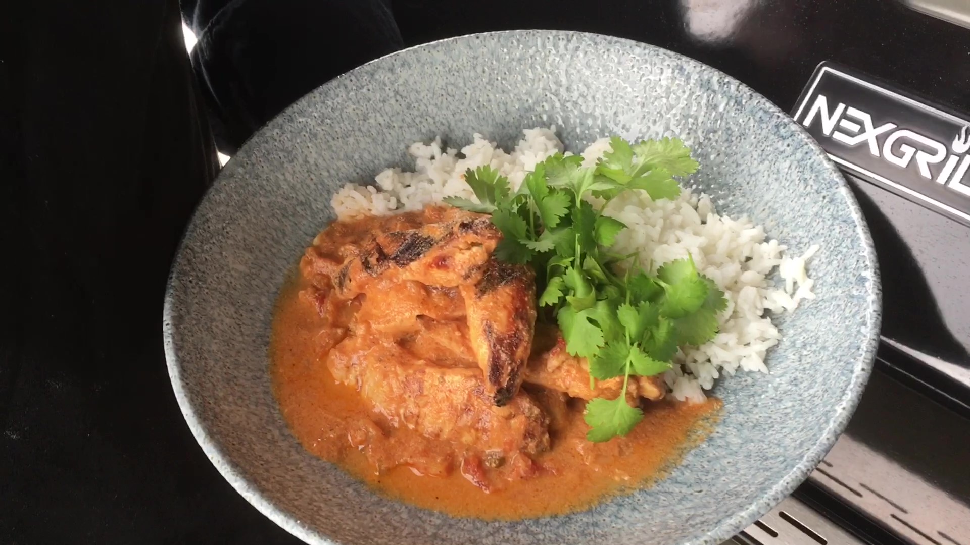 Retten kan serveres med kogte ris og Naan brød til, hvis man ønsker det. Ris koges på gasgrillens sidebrænder, og du finder en opskrift på Naan brød her nederst på siden og under alle opskrifter fra Nexgrill.