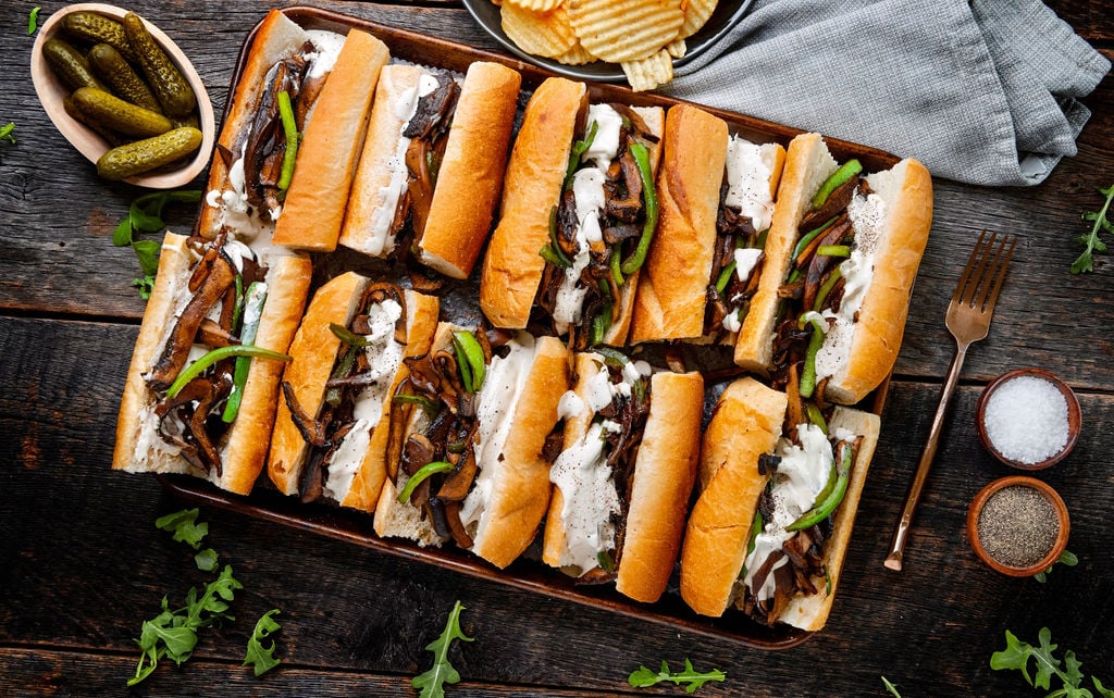Nyd de veganske Portobello og Oste-sandwiches med masser af servietter ved hånden. Velbekomme!