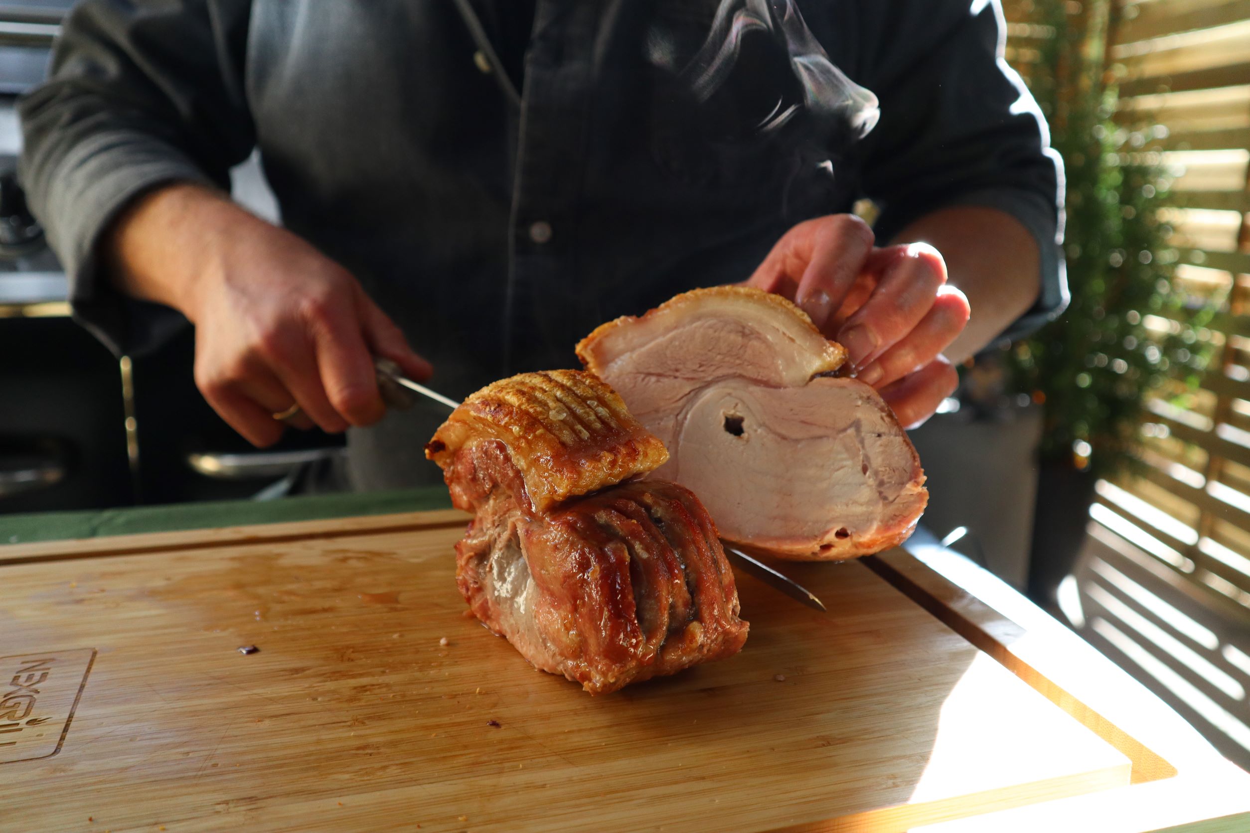 KAMSTEG: Kom stegen på et Nexgrill rotisserie og hæng det i grillen, eller alternativt stilles stegen i en grillbakke ved indirekte varme. Stik et trådløst stegetermometer i stegen og luk låget. Lad stegen tilberede i grillen indtil en kernetemperatur på 62 grader. Efter stegningen stiger kernetemperaturen med ca. 3-5 grader. Lad stegen hvile 15 minutter, inden den skæres ud. Skiverne skal være let rosa og saftige, så er stegen perfekt.