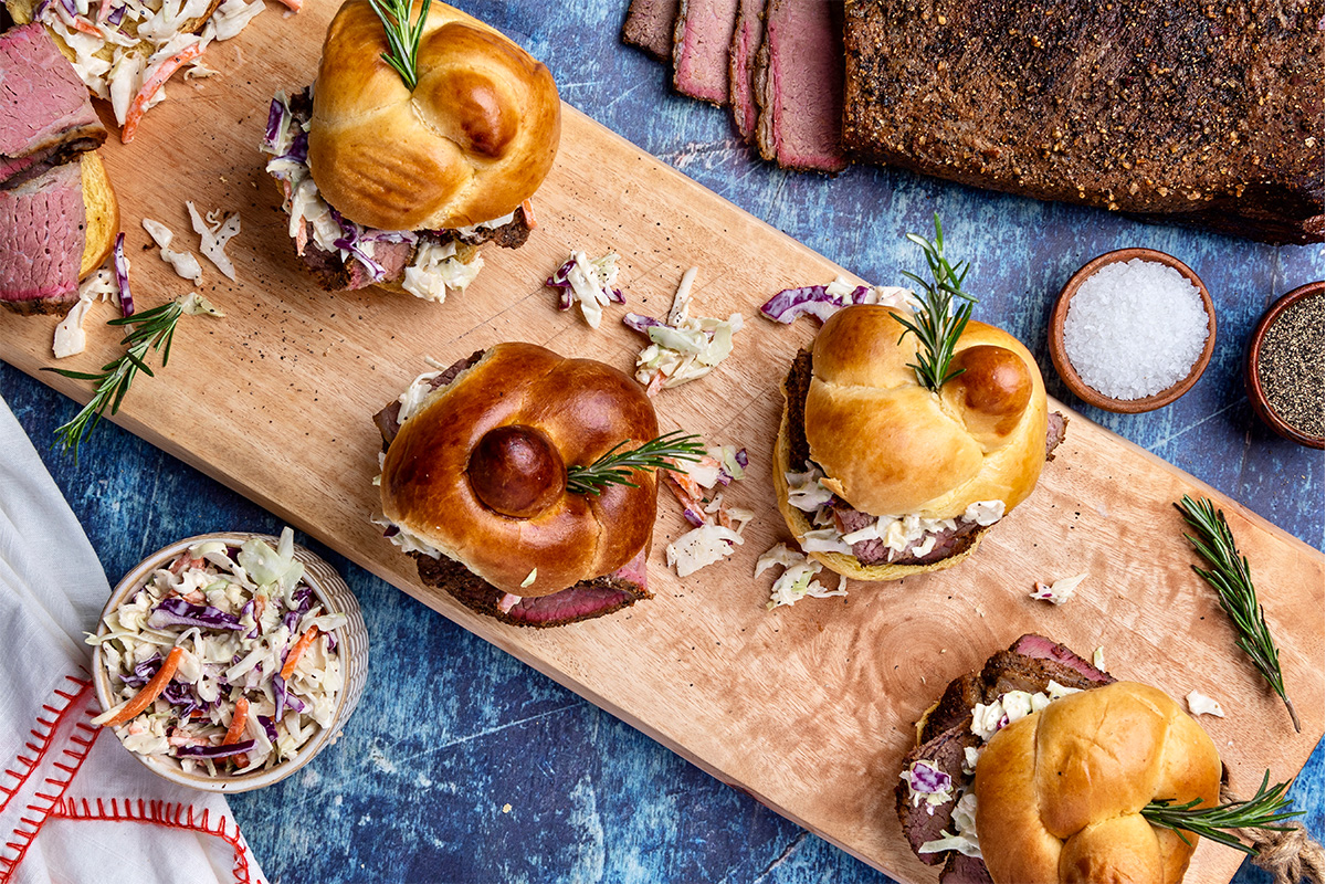 Så er dine sliders med slow cooked spidsbryst færdige. Du kan se dig selv i spejlet velvidende, at det er en mester i spidsbryst-rygning og skive-stabling, der stirrer tilbage på dig. Nyd de her lunser spidsbryst. Du har fortjent dem.